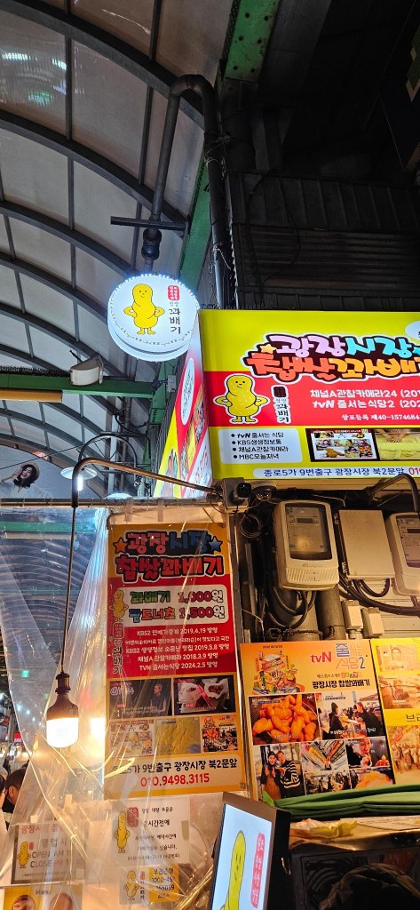 We enjoyed our afternoon tour during which our guide, Shin, gave us some recommendations of places to eat and things to try at the famous Gyeongdong Market, where the tour was to conclude. The market consists of many different food stalls and stands offering sweet and savory treats, some offering the option of seating while others are strictly grab and go.