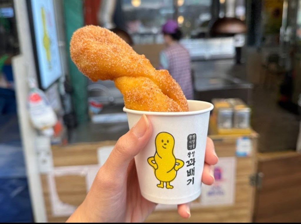 After we’d had our fill, we headed out to find the other treat (ok, maybe we hadn’t had our “fill”) at the market I wanted to try, the twisted donut. The donuts, or kkwabaegi, is another treat we’d seen when researching Seoul. It’s a twisted bread made with glutenous rice flour, then fried and rolled in cinnamon and sugar. The consistency is crispy and chewy, kind of like a deep friend mochi. Yum. Sadly, not a super-food.