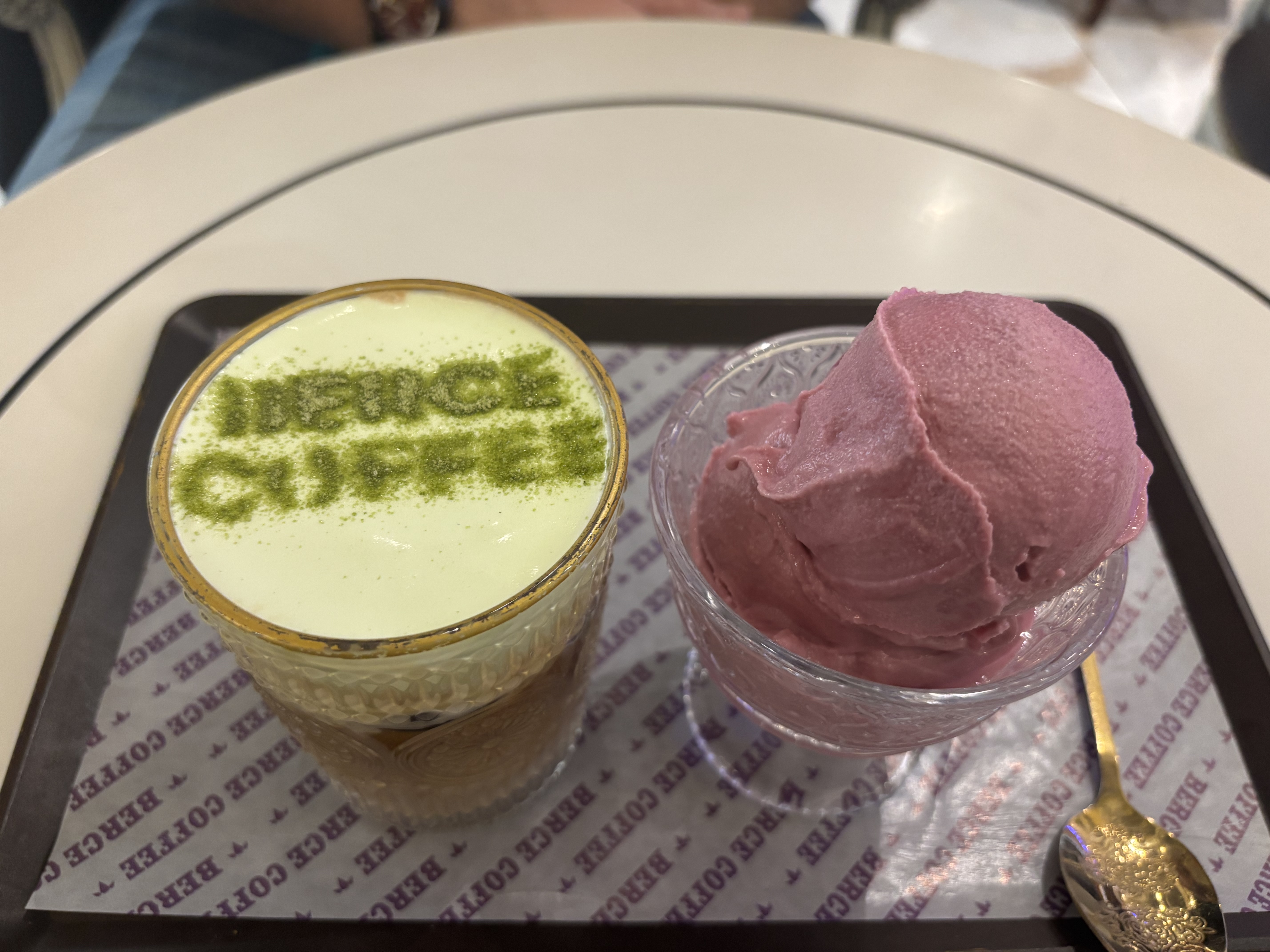 The highlight of our mall time was the impressive library and the coffee I had at Berce coffee, located right next to the Coffee Bean and Tea Leaf, of course. Phil enjoyed a blueberry gelato and I, a pistachio cream cold brew.