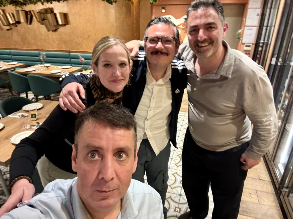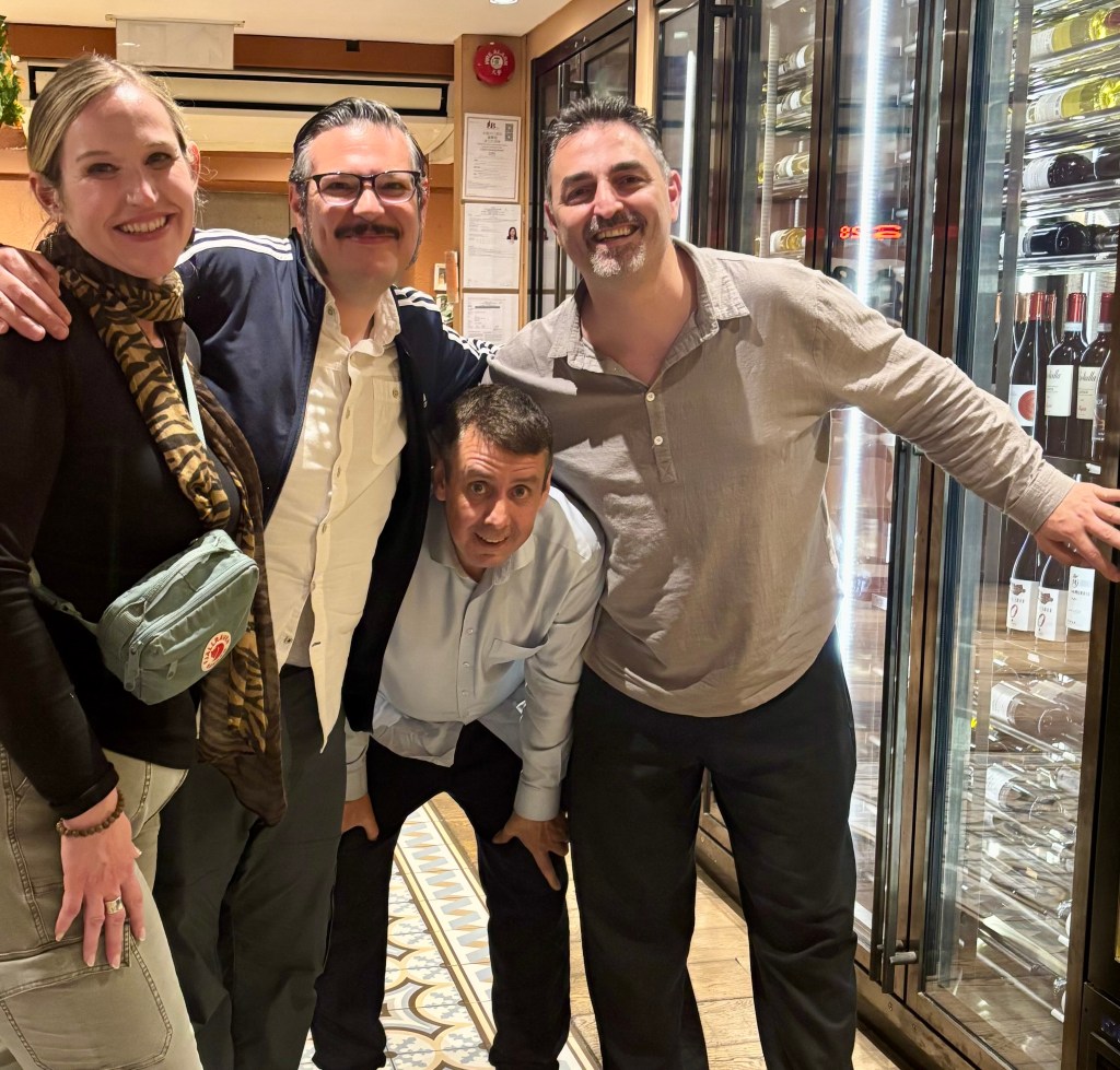To end the meal, Panos brought out a port after the Xinomavro. The desert wine was a real treat and very lovely. We floated our way to the exit just before 11pm and grabbed a couple of photos with Panos (next to Phil in the photo below) and Alfonso before heading back to the hotel.