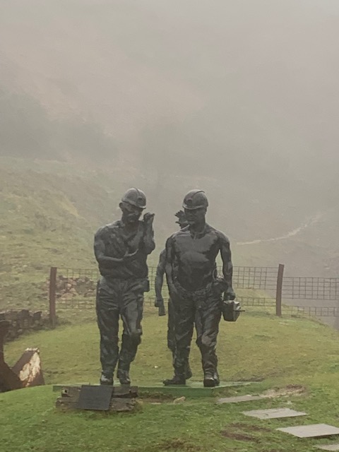The fog accompanied the rain and although we could tell the vistas must be beautiful, high in the mountains, we were unable to enjoy them. We did snap a few picks of the monuments outside before heading back in to join the tour.