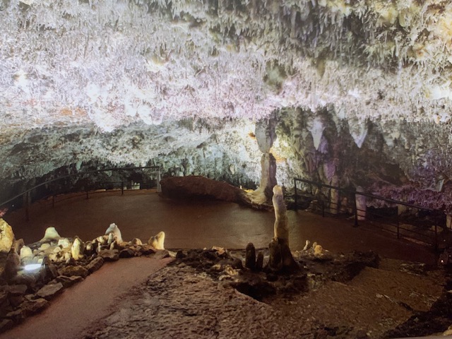 About 45 minutes after our breakfast stop the bus started climbing high into the Sierra de Arnero mountains and shortly thereafter we arrived at Cueva del Soplao (Cave of the Blown). The cave was discovered by miners 1908. “El Soplao” (the blown) is a mining term that refers to the blowing air that is felt when perforating a tunnel from another one with less oxygen.