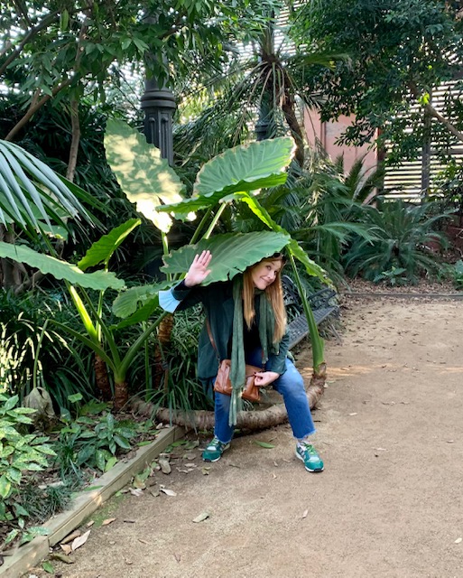 Next to the parrots was a large, wood slatted building. We wandered in and discovered it full of lovely, lush green Palm trees, ferns, and the biggest elephant ear plants I have ever seen (I guess we had a theme for the day)! We were the only ones in the place so we took our time and enjoyed the sunlight peeping through the slats down on us and the greenery.
