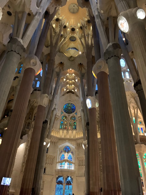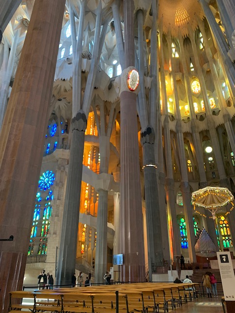 We made our way to La Sagrada Familia after lunch and arrived about a half hour before our scheduled tour which gave us time to explore the church on our own for a bit. We’d seen the outside of the church during our visit in 2008. That alone was quite impressive but the inside is truly something to behold. In my opinion, in terms of beauty and majesty of European churches we have visited, it is only trumped by St. Peter’s Basilica in Vatican City. Phil writes in more detail about our tour here.