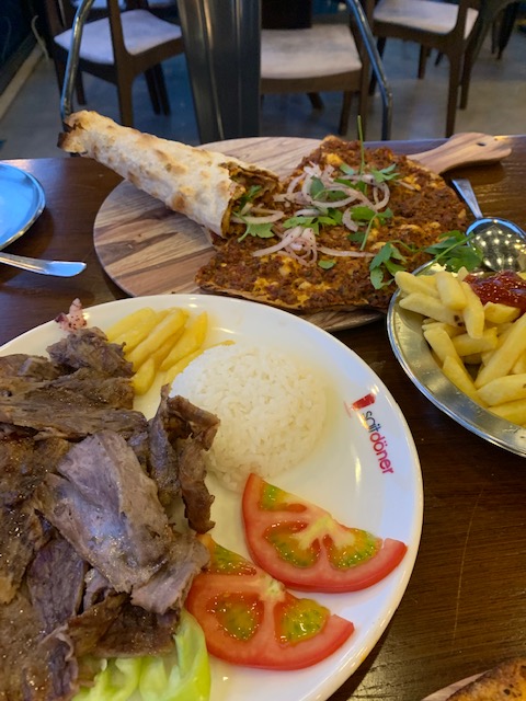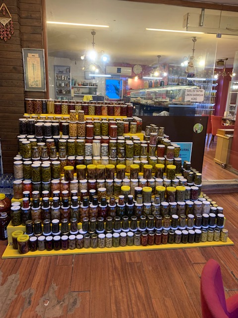 As long as we are talking about the food, let me tell you more about the food. It is amazing. I love Turkish food. It consists of a lot of meats including lamb, which I love, also a lot of bread, which I also love. Typically when I think of Turkish food, I think of flat breads but we have encountered all types of bread here from fluffy white to a tasty pretzle-type ring bread called simit that is covered with sesame seeds (a favorite of Phil’s). But it’s not all meat and bread. We have also had delicious seafood, rice, chickpeas, pickled vegtables, and a bounty of the aforementioned fresh vegetables including; tomato, cucumber, eggplant, peppers of all kinds, onion, garlic, and fresh herbs. We have had a lot of fresh parsley since being here and it makes me wonder why we don’t incorporate it into salads more in the U.S. We have yet to have a bad meal in Turkey. In fact, you can find a delicious, meal for two if you look a bit outside of major tourist areas, for around 200TL (Turkish Lira), which is roughly $12. Oh, the food!