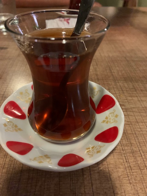 The hotel breakfast was good. Turks are actually quite known for their breakfasts and many restaurants offer traditional Turkish breakfasts. A typical Turkish breakfast consists of different types of bread, cheese, meat, honey, jam, olives, eggs, tomato, cucumber and sometimes potatoes and other vegetables or delicious fried cheese rolls (looks like a taquito but tastes like phyllo stuffed with cheese). Oh, and tea. Lots of tea. Turks love their tea, even more than they love their famous Turkish coffee. In fact, Turkey is the largest consumer of tea per person in the world. Kahvalti means breakfast in Turkish and literally translates to “before coffee,” so while Turks still love their coffee (just not quite as much as tea), they do not drink it with their breakfast, only after. I am not Turkish, so I had both coffee and tea with my breakfast.