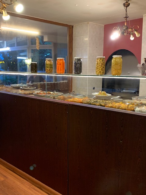 One of my favorite meals in Antalya was a small restaurant where the couple working spoke very little English. The woman was able to convey that we needed to come inside and look at the dishes they had prepared, select what we wanted, and then they would bring them to us. This type of set up is fun but can be quite dangerous for someone who likes to try a lot of foods. I kept pointing and they kept loading up plates and bowls. I even let Phil get a few dishes. The other notable thing about the restaurant were all of the jars of pickled vegtables they had stacked up. The dishes we had, usurprisingly, had a lot of pickled veg incorporated. It was all so delicious. We were way too full for dessert yet somehow ordered it anyway. It consisted of a Turkish flan-like dish and a crumbly cake with honey and cinnamon.