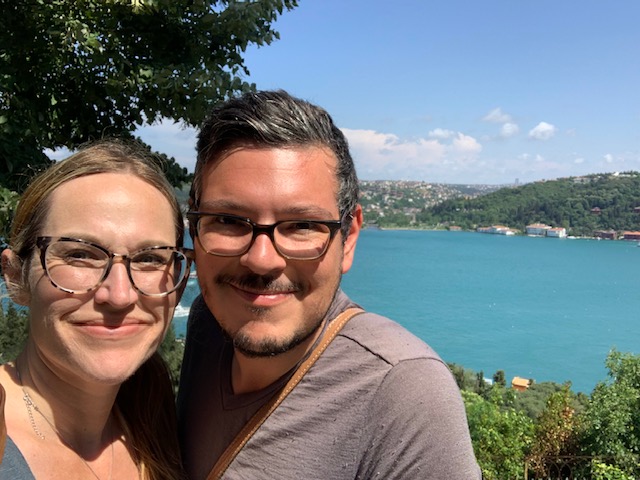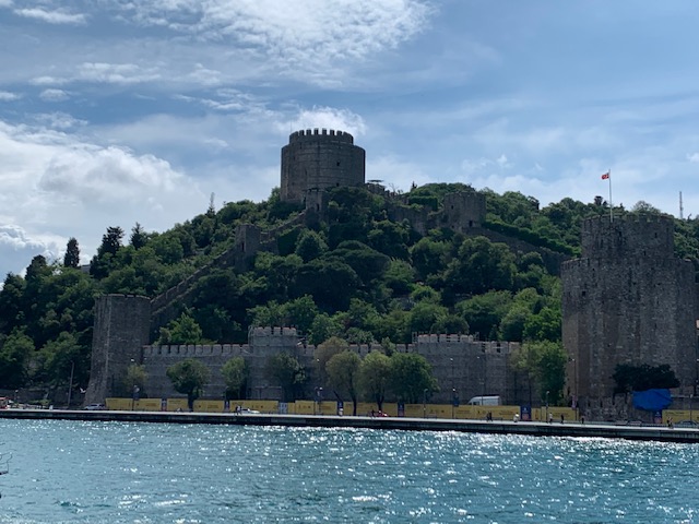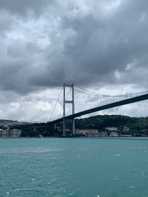 We met up with Rob and Amanda again a couple of days later for a cruise on the Bosphorous Strait. Many local cruise operations catering to tourists offer two hour cruises from 20-30 euro. Lucky for us, Rob and Amanda had spotted one the day prior that is run by the city government for only 32TL (about $1.50)! The cruise was lovely and we had great seats on the middle level of the boat which was elevated enough to have great views but also covered to protect us from the rain and harsh sun (belileve it or not we had both on this afternoon). And we saw more dolphins than we ever expected to see. Bonus!