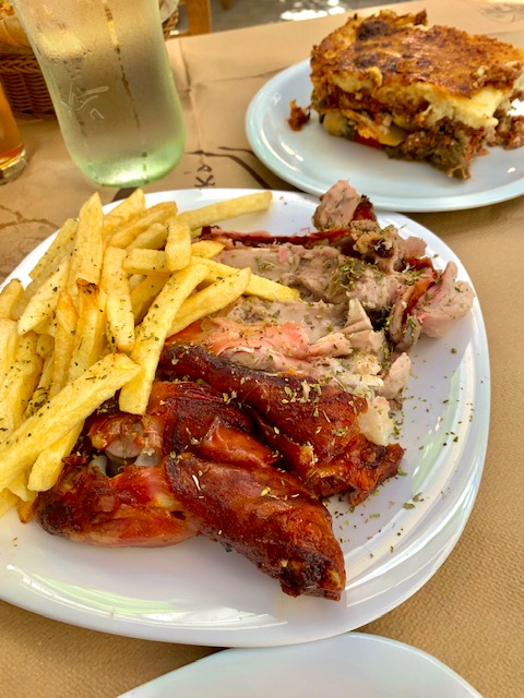 After the meat market, we stopped at Polykala distillery, a one hundred and twenty-five year old family run distillery. Rena, whose grandfather started the business, told us a bit about the various liquors and liqueurs they make, complete with samples! We tried small servings of coffee, lemon, sage, cherry with cinnamon (that tasted like Christmas), grapefruit, and rose flavored liqueurs. My favorite was sage. It was so, well, sage-y. Phil’s favorite was peppermint. We compromised as he did not like the sage and I did not care for the mint, and purchased a bottle of the lemon, or limonata. It tasted similar to limoncello but not quite as sweet. I like Rena’s style. Inviting folks in and getting them a bit liquored, or liquered up as the case may be, tends to loosen the purse strings more often than not I imagine and everyone walks away happy from the experience.