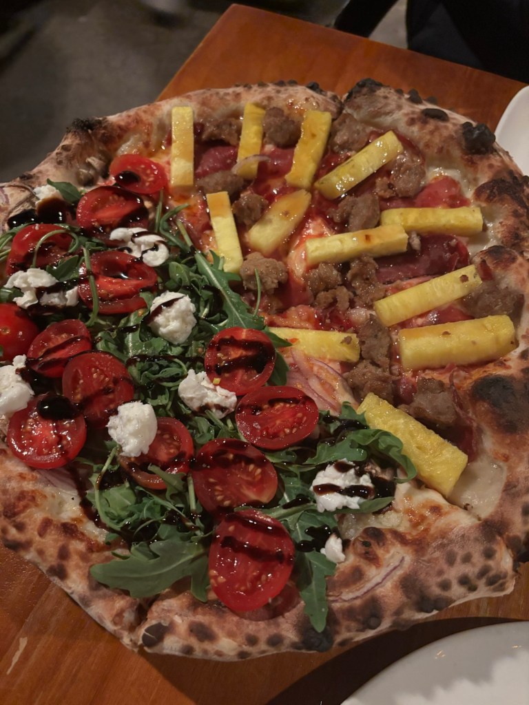 Google maps does not work well in China or Hong Kong, so it took Phil, our navigator, a bit to get used to the local map app that kept readjusting our location. We walked in circles a couple of times and ended up eating at Mother of Pizzas which was located near to our hotel. We ordered a half pineapple and sausage (the house specialty) and half rocket (what many other English speaking countries call arugula) caprese which had arugula, tomato, and burrata with a balsamic glaze. While the pizza wasn’t bad (I mean, it’s pizza, even when it is bad, it’s still pretty good), it ended up being one of our most expensive meals in Hong Kong and was definitely overpriced for the experience.