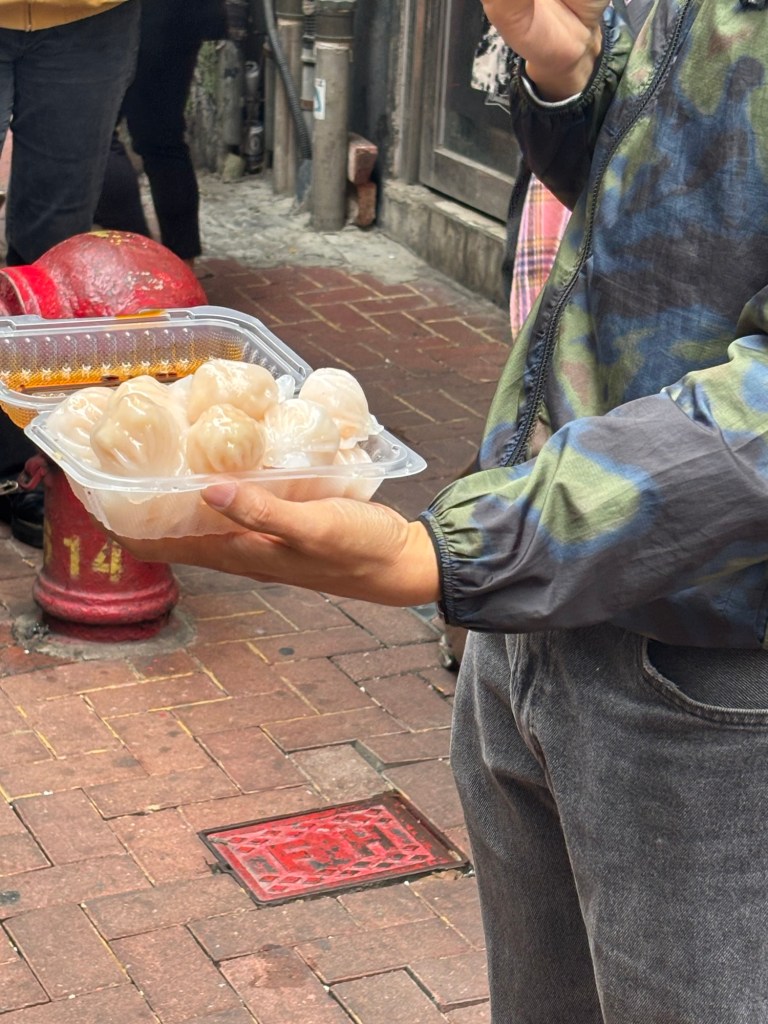 One of my favorite things we did in Hong Kong was a street food tour with local guide, Steven. We were joined by several other travelers who all had good energy, which made it extra fun. There was the newly retired couple from Nashville, the mother and daughter from Northern California, a single gal from New York on a 14-hour layover, a British couple, retirees from San Diego, a Swiss Latina, and a German lady.