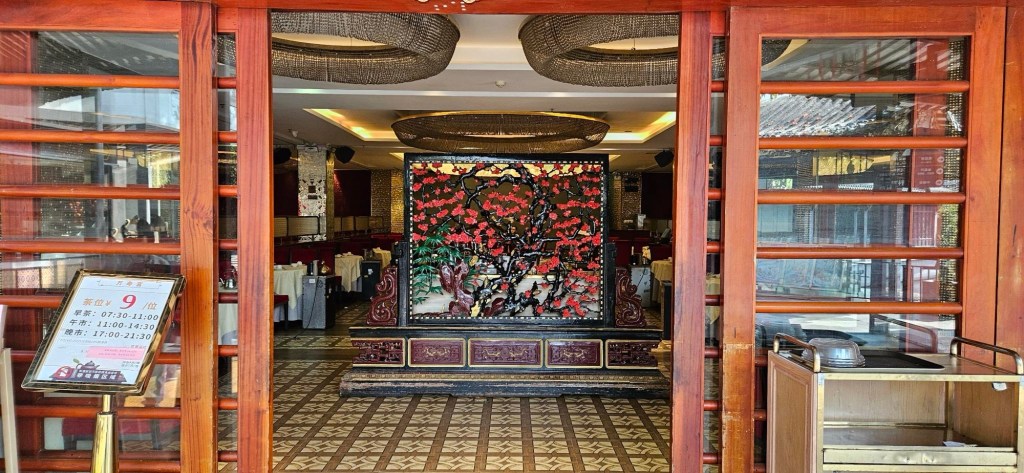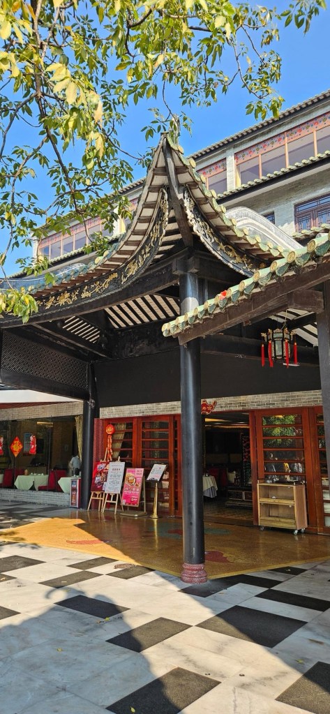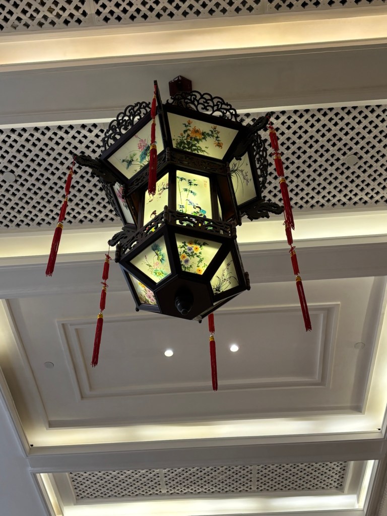 We spotted what looked to be a nice restaurant from one side of the little lake, and decided to head that way as our breakfast was wearing off a bit. We entered the restaurant from the busy pedestrian street, but seemed to be on the backside, or not the main entrance. A kind fellow who spoke a little English saw us standing, looking a bit confused, and directed us to another entrance. We followed his instructions and walked around the building and entered into a rather large hall, with a lot going on. It was a large foyer, leading to several different businesses. But I was determined and hungry, so after some looking around, I entered into a dining area (I am still not sure if it was the same restaurant we’d previously tried to enter as it was huge), and went up to a wait staff who directed us to a table. Success!