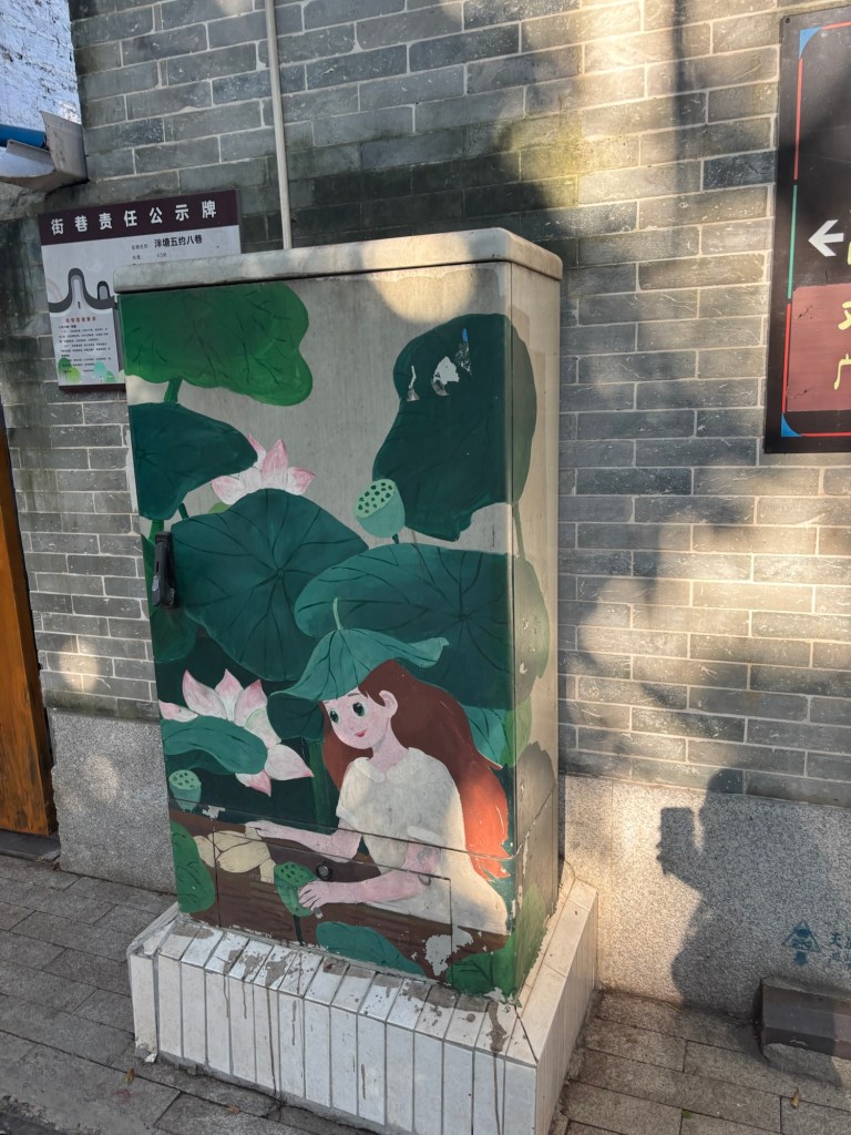 After eating so much, we needed to walk a bit, so we wandered around the streets of old town for a while. We noticed that all of the street utility boxes (and some of the walls) were often painted with some sort of pretty or silly scene.