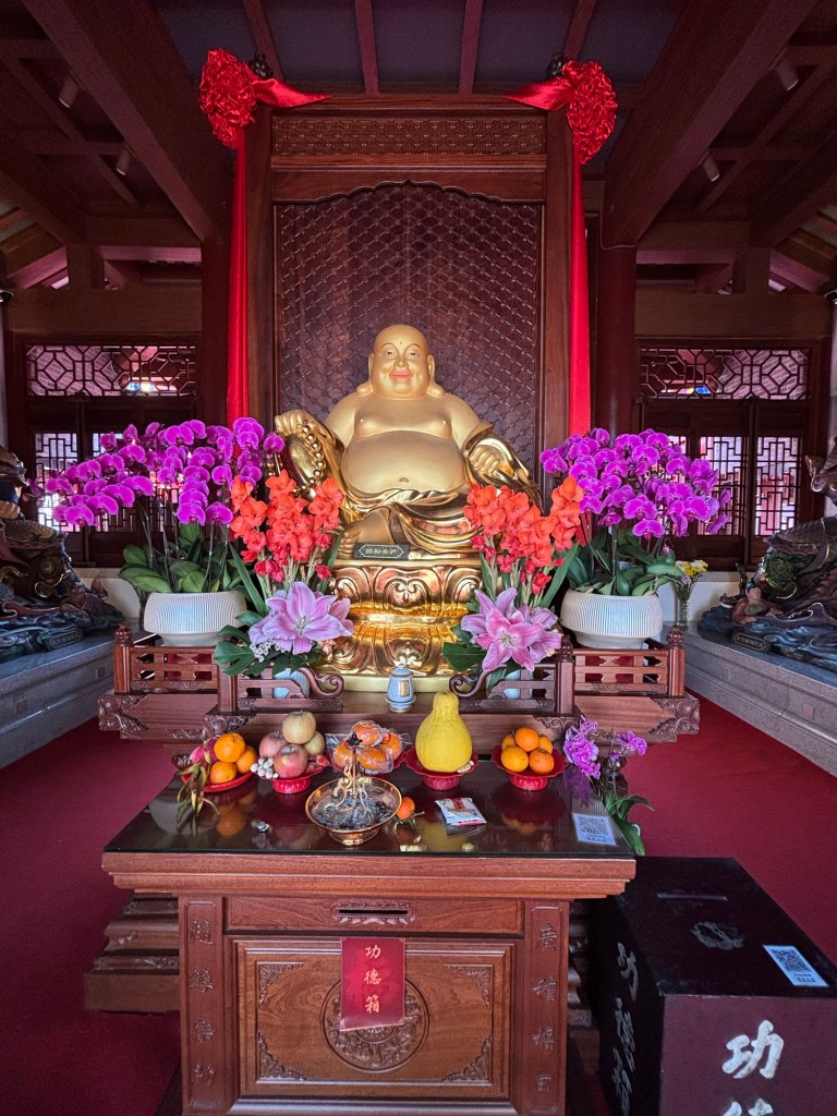Eventually, we happened upon a Buddhist nunnery. It was small and very relaxed and of course, festive for the New Year celebration, with offerings of flowers and fruits to the deities.