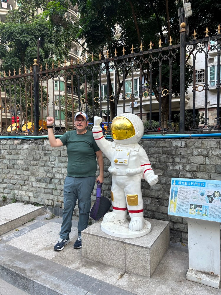 We decided to wrap up the day and take a leisurely walk back to the hotel. We wouldn’t need any dinner after our lunch feast. We passed the oddly placed astronaut below (not the only one we saw) on the walk back.