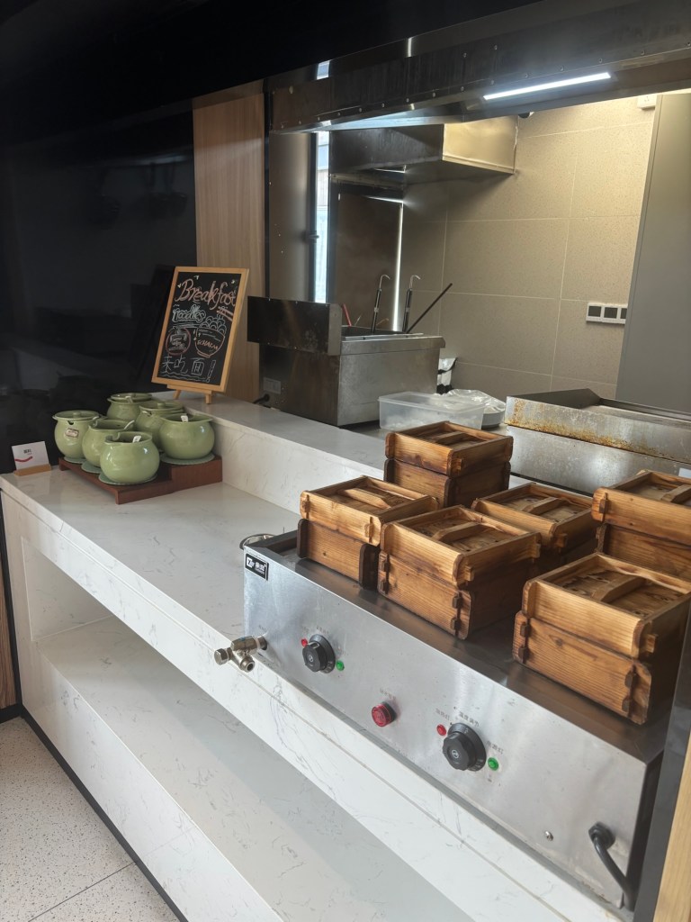 Savory breakfasts are typical in China. I knew this going in. In fact they are common in much of Asia. At home in the U.S., when I am in a steady routine, I am not usually a breakfast person. I’m a several cups of black coffee person and good til lunch or a mid-morning snack. If I do eat breakfast, I usually prefer a sweet one; yogurt with honey, a sweet lil pastry treat, basically anything that pairs well with the aforementioned black coffee. But, when in Rome, or China, as it were, do as the locals do.