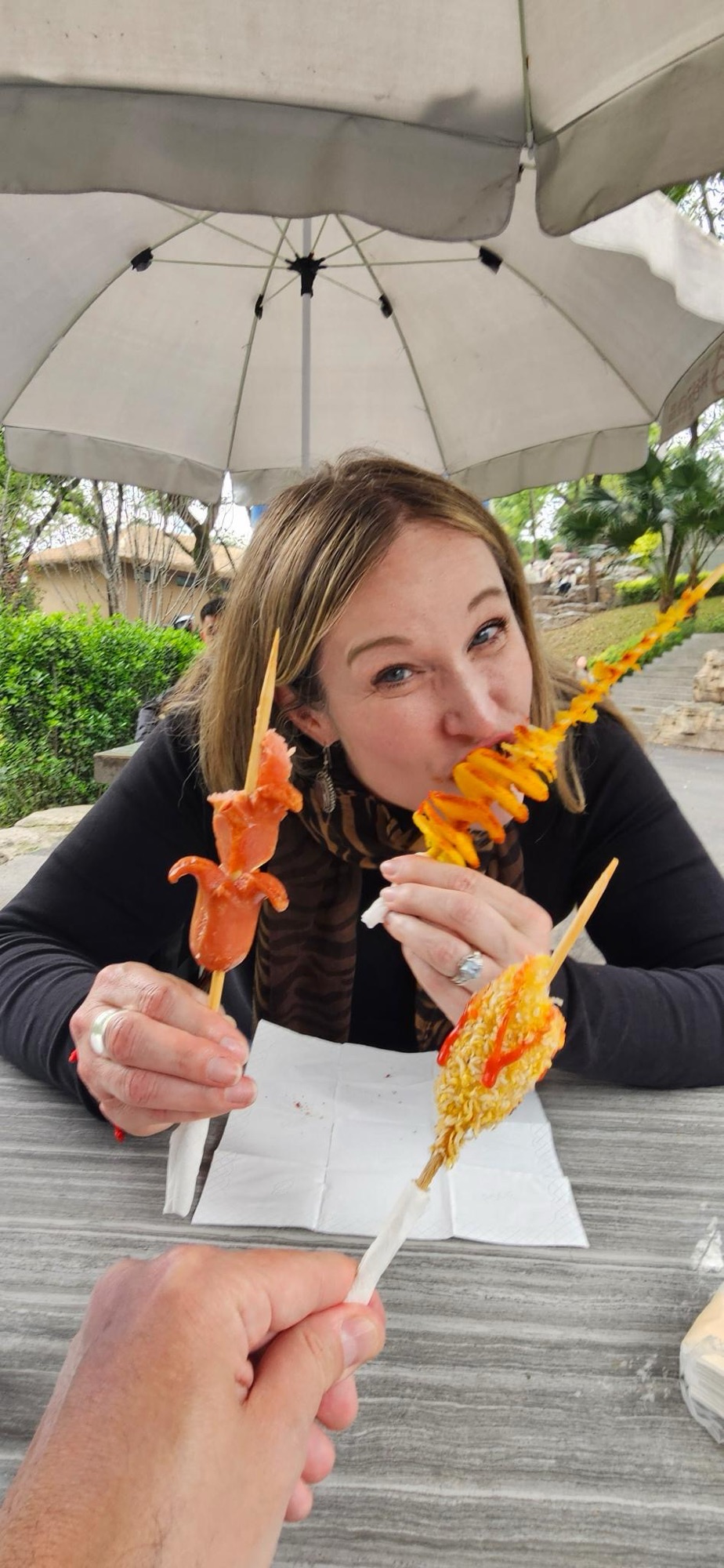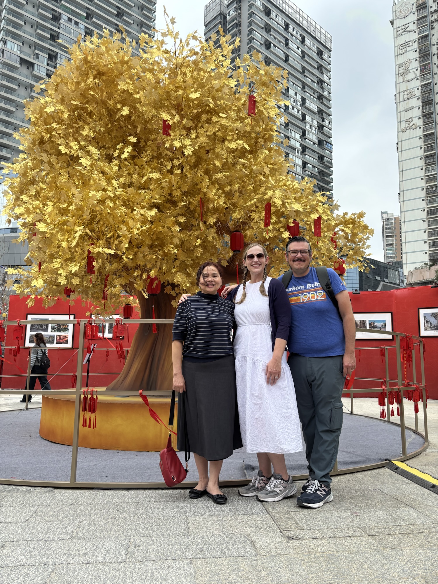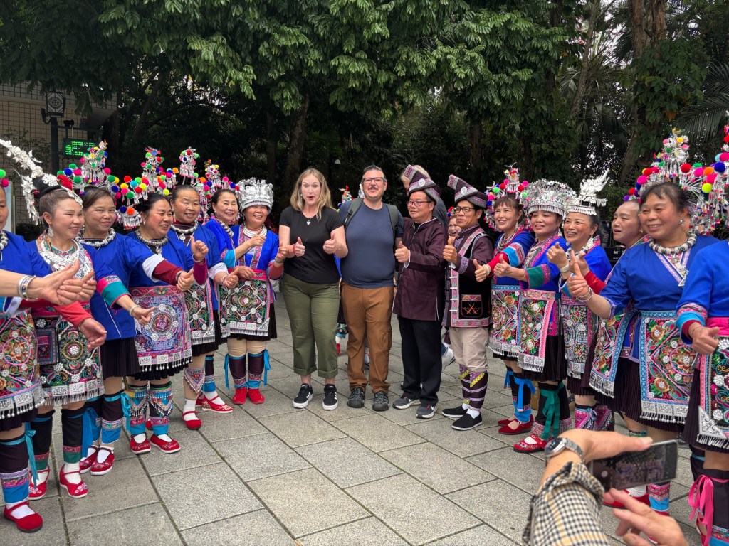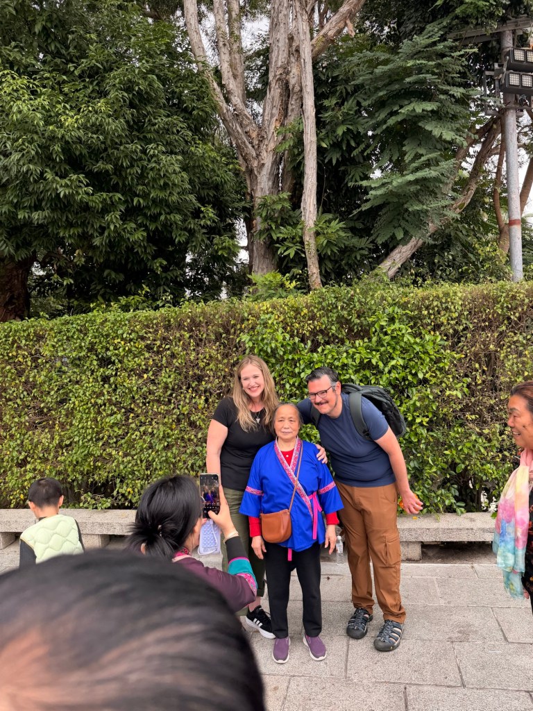 When we were in Nanning, we went to a park one weekend with a Canadian couple we met, Craig and Belle. Belle is Chinese and was able to help serve as interpreter when we came upon a group of the ethnic Dong people who were gathered in the park dancing and singing. She asked them if we could take a photo with them. They enthusiastically agreed and then began snapping their own photos. They sang us a welcome song and invited us to dance with them. Afterward, folks kept grabbing us to snap more photos with them, individually. We couldn’t stop smiling. It was such a cool, unique experience.