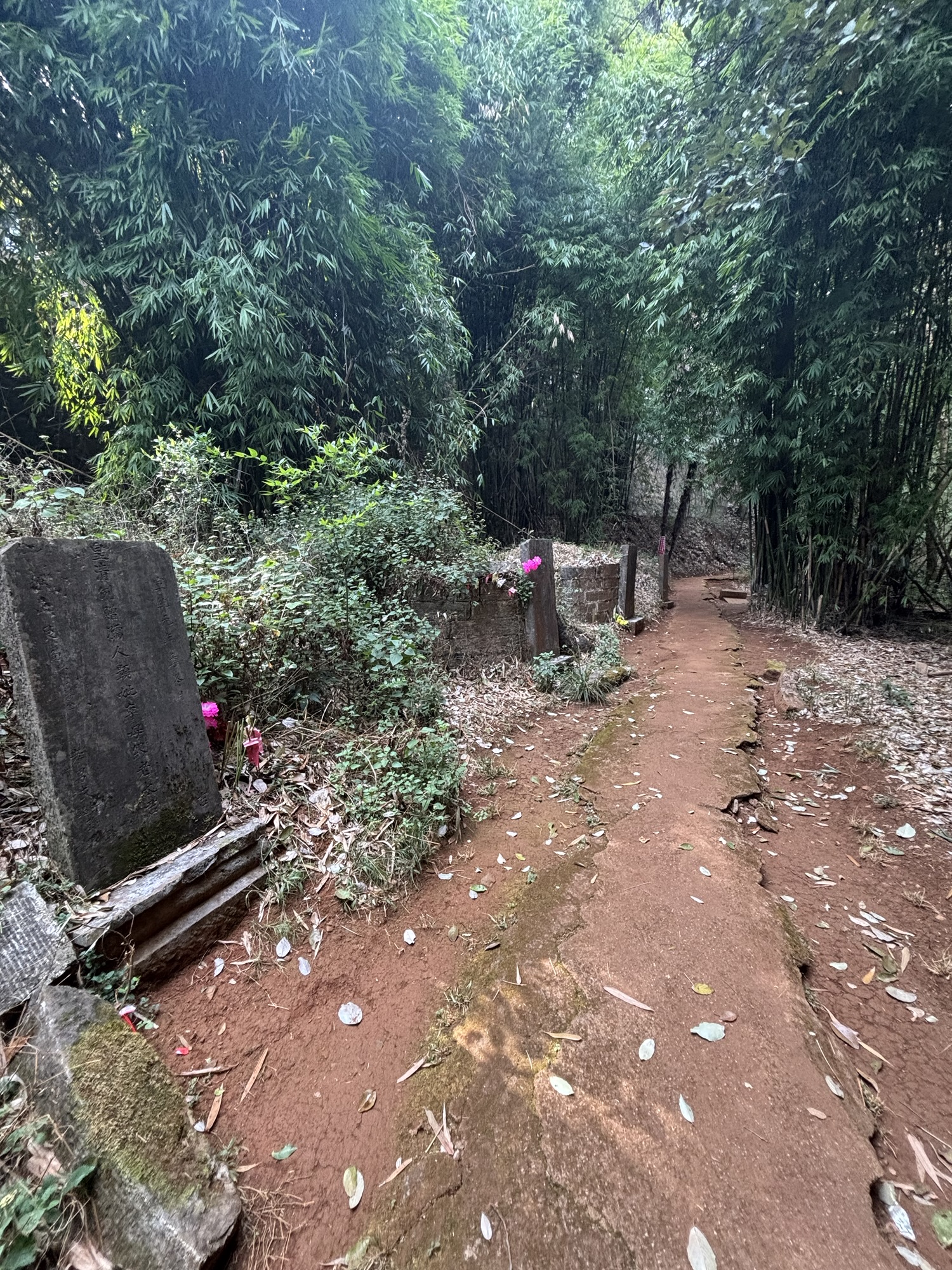 We saw many Chinese burial mounds during our two months in China, the first of which were in Kunming. We’d gotten a bit off the beaten path (well, there actually was a path, to be fair) and found ourselves descending Biji Mountain down a winding trail through the woods (Phil writes more here).