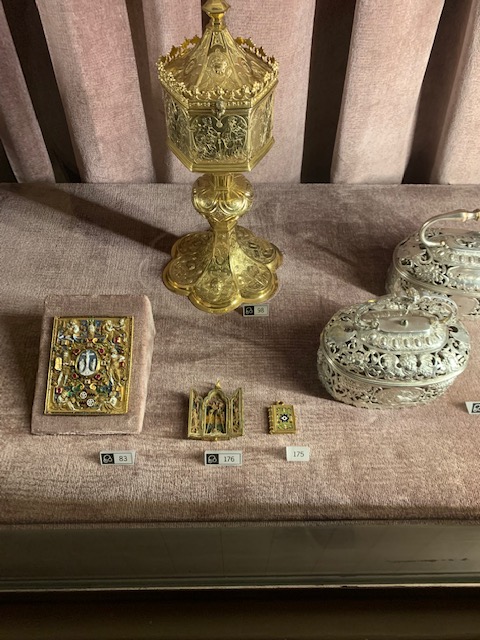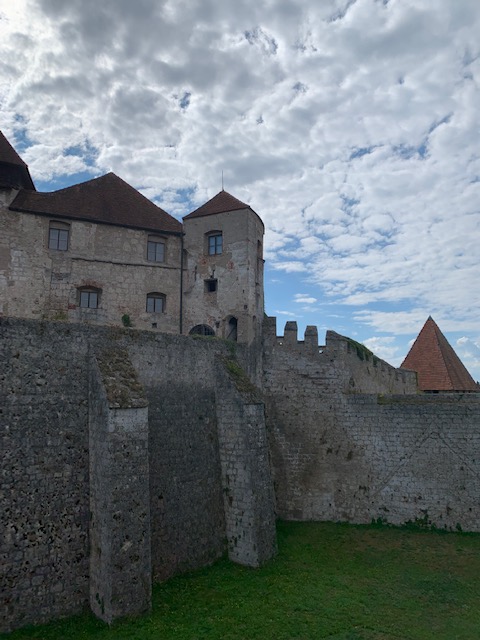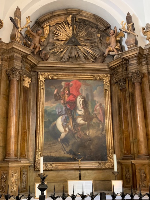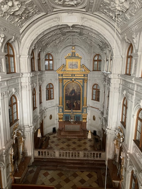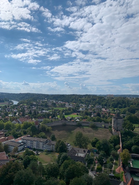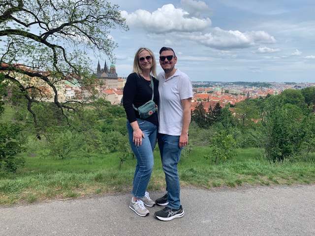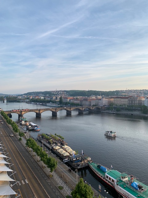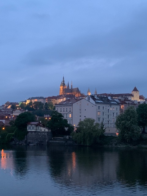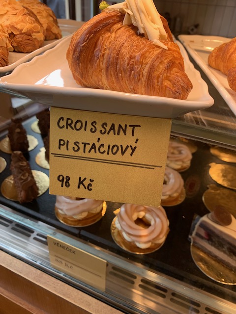 Next, we were off to Petrin park, home to Petrin Tower. We opted not to make our way up the tower and instead decided to check out the mirror maze built for the 1891 Prague Exposition. We had a laughing good time and afterward ducked into the park cafe to escape the near constant drizzle of the day and enjoy some of our treats from Cafe Savory.