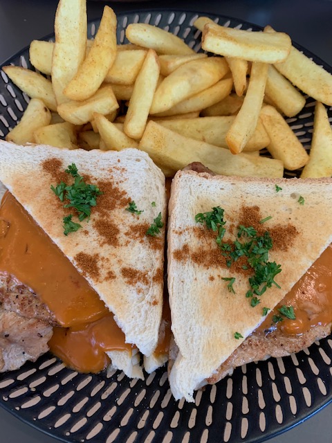 The next day was a rainy one. We put on our rain jackets and headed to Café Savoy, a French cafe from the early 20th century. We weren’t able to secure reservations for their breakfast, but the lunch menu was pretty solid. I had the escargot, Diana a French omelet, and Phil and younger Diana both had the ham and cheese croissant.