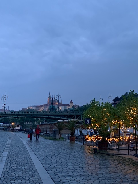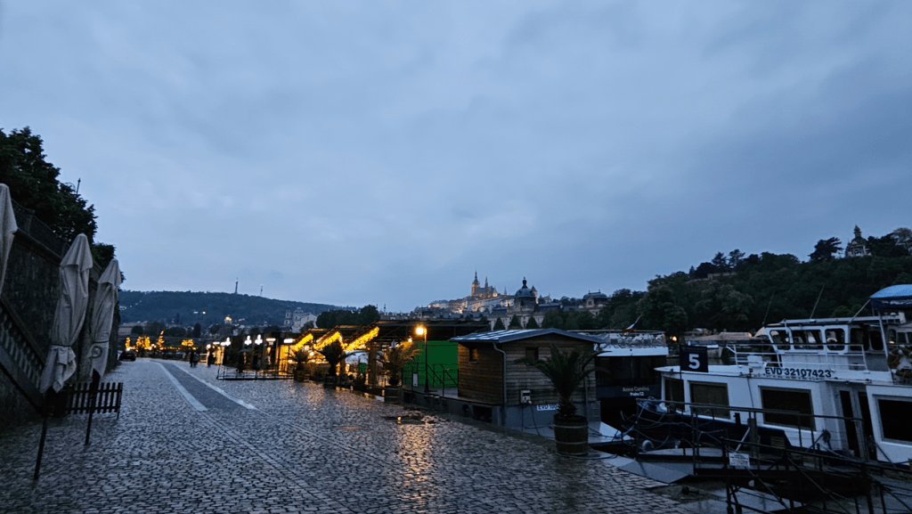After another quick get out of the rain/beer break, we started to make our way back to the apartment. We walked down, toward the shore of the Vltava River to take in the Charles Bridge from that vantage point. There was a lot of water foul milling around, so it took a minute to register the giant rodents waddling around the water’s edge. They appeared to be beavers with rat tails. We gave them a wide berth and did out best to avoid the giant rodents as we made our way closer to the shore to snap a few photos of the bridge. There was another couple near the shore who were petting and feeding the animals which to me seemed both gross and dumb.