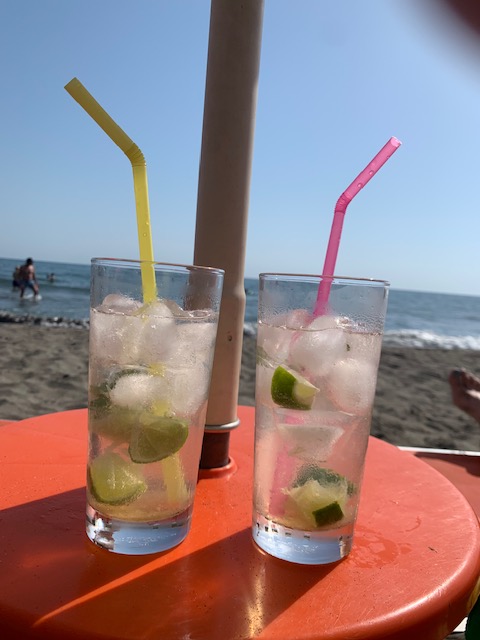 Shëngjin is a laidback beach town. Not all beach towns in Albania are so laid back, we would later discover. Shëngjin is mostly a tourist destination, with a long strip of sandy beach and beach bars (forever chiringuitos to me) on one side of the street and restaurants and more bars on the other side. Lining the beachfront are various beach chairs with umbrellas, usually with a small table. Each change in chair style or umbrella color denotes a change in ownership of the seating area. Once you identify a seating area/umbrella situation that suites your needs, one simply sits down at an open seat and shortly a fellow will be by to collect the small sum (less than $5 USD) to rent the chair(s) for the day. Oftentimes, these seats are affiliated with a beach bar. This offers both the comfort of lounging by the beach and the ease of procuring a beverage mere steps away.