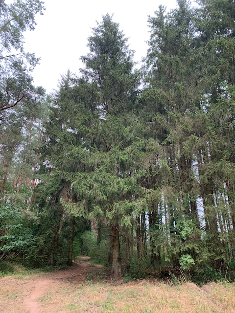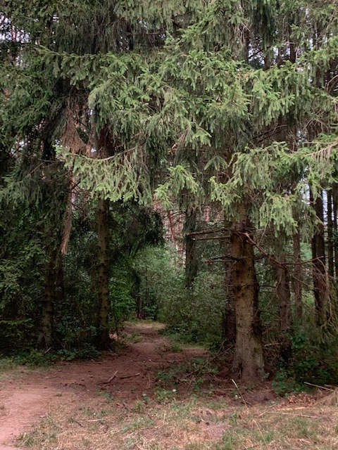 As we walked further down the trail, we were soon in a lovely wooded area with tall trees. It felt good to be out in nature. With the exception of an older fellow and his dog we passed, it was just the two of us until the trail eventually led us back into town. It was a really nice walk.