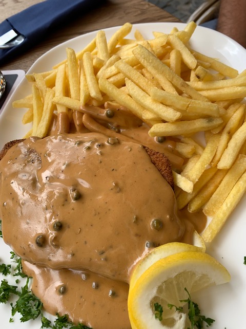 After leaving the base, Katie dropped us off the nearby city of Kaiserslautern (population around 100,000) so we could do some exploring. Our first stop was the Art Museum, Museum Pfalzgalerie Kaiserslautern, followed by a lunch of schnitzel in a pepper sauce with fries and a beer. I know, I know, not the light lunch we’d discussed but Phil and I split the meal so I didn’t feel like I was spoiling my taco dinner. Plus, when in Rome, do as the Romans do. When in Germany, drink beer and eat schnitzel.