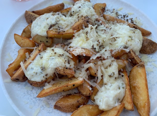 We decided to stop for some food and we found a cute little spot called Pacific Princess that looked like a cruise ship inside. We sat on the patio and shared a few delicious small plates and a bottle of rosé. While our younger companions didn’t love everything we sampled quite as much as Katie and I did, they did try everything which is great. Your tastes change as you age and tasting different cuisine is a huge part of the traveling experience. So while you may not love everything a paticular country, region, or style of cuisine has to offer, I think it is important to try it and try it more than once because who knows, you might like it or you might eventually like it.