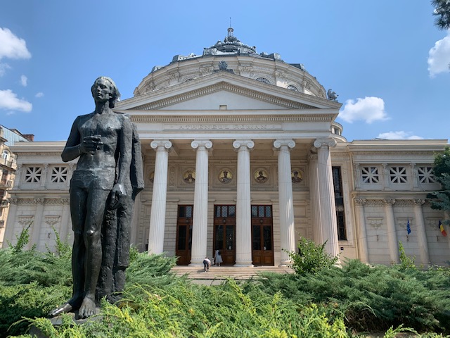 Very near to our rental was the Romanian Athenaeum, a theater and concert hall built in 1888. The outside was beautiful and we discovered it was open to tour. The main lobby is something to behold with four, grand, spiraling staircases leading to the concert hall in addition to the main staircase. The hall itself felt quite intimate and set up in a way that any seat was a good seat.