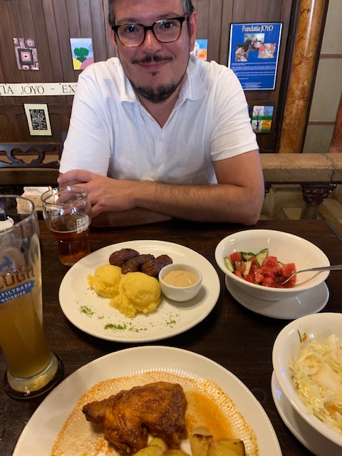 We dropped our bags at the apartment and headed out for some grocery store supplies and doner kebab for dinner. It was still raining so we navigated the streets, trying not to get too wet, under our small umbrella as best we could. We had grown accustomed to walking under the giant umbrella we had in Gijón (that stayed in Gijón with our friend, Diana). Contrary to what My Fair Lady may have taught you, the rain in Spain stays mainly in the mountains, not the plains, but I digress.