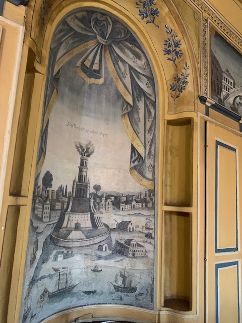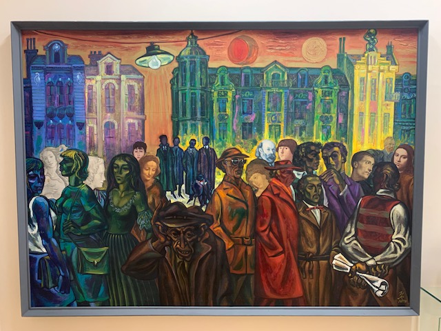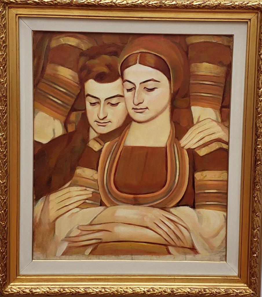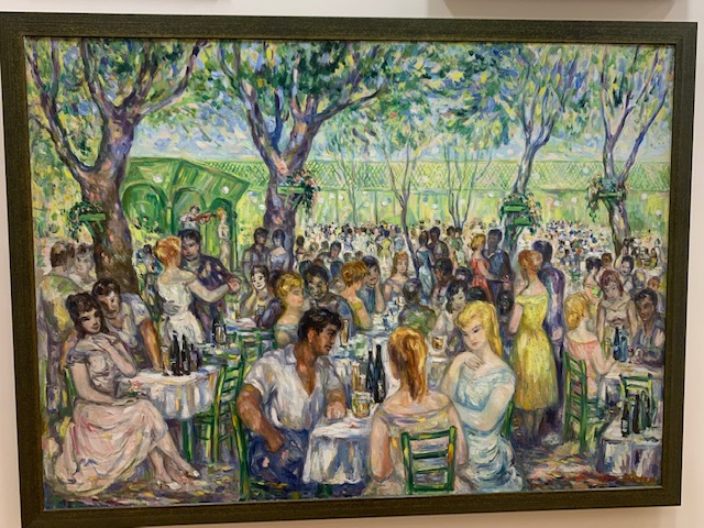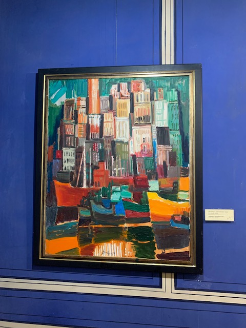While taking in the beautiful paintings and the building itself, I saw a painting of a place that looked very familiar. I thought to myself, “We’ve been there”. It wasn’t Venice or Paris or a huge, widely recognizable city. I leaned in to read the title and sure enough it was Chioggia (by artist Gheorghe Pestrascu). Phil and I made a few hours visit to Chioggia on our drive to Venice when we visited Italy in 2019.