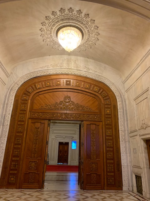 During our hour long tour we went up several staircases, saw two theaters, a beautiful ballroom, galleries, meeting rooms, and long hallways and that was only 5% of the building. The coolest area we saw was the grand balcony overlooking Unity Boulavard. Ceaușescu had envisioned giving speeches from this balcony. The first person to ever address the public from this balcony in Bucharest was Micheal Jackson in 1992 when he famously said, “Hello Budapest! I’m so glad to be here”!