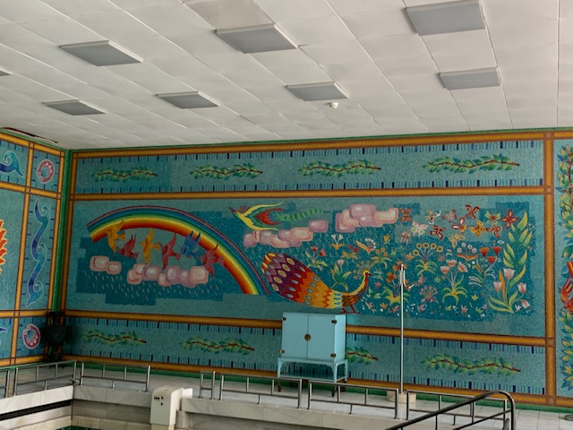 The Ceaușescu’s added on to the home in the 70’s, adding a dressing room, atrium, and large indoor pool. It was groovy to see the style of the home transition from the 60’s to 70’s. The pool area was really something with psychedelic mosaics surrounding it.