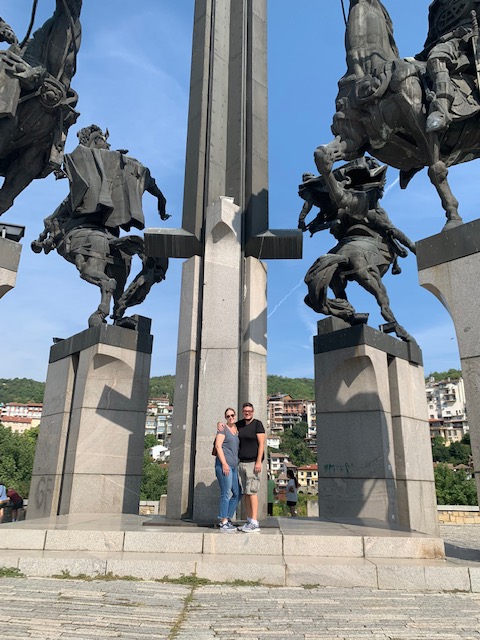 We met Iva and Tiana in front of the Monument of Mother Bulgaria near the center of town. We walked on, over the Stambolov Bridge, high above the Yantra River and took in some great views of the old town. We also saw the large and impressive monument to the Assen Dynasty in the near distance. The Assen dynasty rose as the leaders of Bulgaria after a rebellion against the Byzantine Empire in 1185 and ruled Bulgaria until 1280. We stopped at the monument and snapped a few photos. It was nice to have someone else who could take photos of Phil and I together. We have a LOT of selfies from our travels and while I love each one of them, it’s nice to have a few us-ies as well.