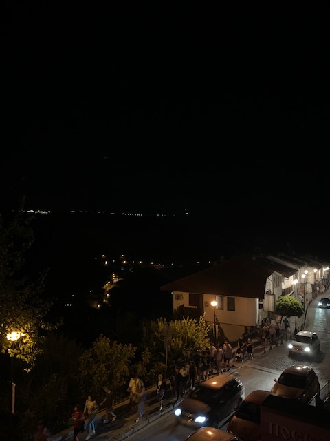 Around midnight, just was we were drifting off to sleep, we were startled by very loud pops. The sound took me back to our St. Louis days when we would play “gun shots of fireworks?” to determine the source of loud pops. We almost immediately saw the bright light reflecting off of the sliding glass door and went to go check it out. We were delighted to have front row seats to a spectacular fireworks display, and these were no half-assed fireworks, we’re talking professional grade. We couldn’t exactly determine where they were coming from due to it being dark and the town being quite hilly but we assumed it must be a wedding or other special celebration to warrant such a grand show.