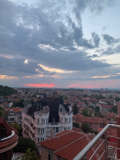 After an uneventful train ride, we exited the train in Sofia it was raining; then getting turned around in the less than impressive underground train station (trash, broken escalator, and huge dead pigeon) we eventually were able to find a taxi to take us to our rental.