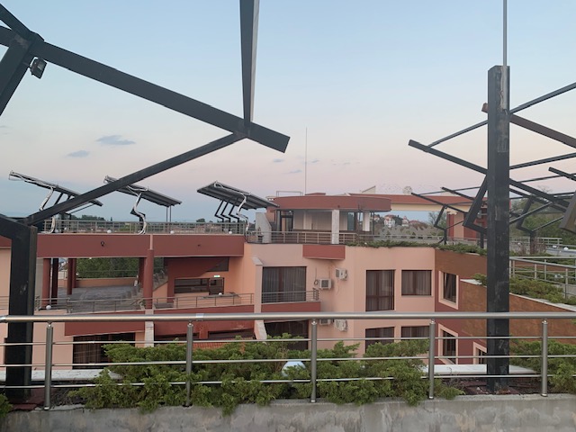 During our time in Albania we have stayed in what are referred to as guesthouses, very similar to rural casas in Spain. They typically consist of a building or house that has been divided into several guest rooms, with indoor and or outdoor common areas. Breakfast is often included and the guesthouse is usually operated by a couple or family. Some rooms are spacious and feel like studio apartments whereas others feel more like dated hotel rooms. We haven’t had a bad stay in a guesthouse yet. Albanians are known for their hospitality and the guesthouse owners genuinely want to ensure their guests are taken care of. The gueshouses are also extremely affordable. The one we stayed at in Shëngjin was the equivilant to $20 a night for a large room with queen bed and two twin beds (we often ended up with triple or quadruple rooms or the “family suite” where we stayed because we wanted a private bathroom), a kitchen table with four chairs, and a kitchette complete with full-sized refriderator. The room wasn’t fancy and it looked like it was straight out of the 1970’s but it was clean and had airconditioning so suited us just fine.