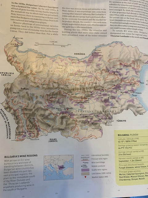 As we waited for Alex to prepare our wine and cheese samplings, we perused a book he offered us about wines of the world. While Spain, France, and Italy had multiple pages about wine and grape varieties and regions, Bulgaria had only one page, which is not a surprise as those other countries are quite known for their wines. Though Bulgaria has a wine making tradition that goes back thousands of years beginning with the Thracians in the 5th century BC (later conquered by the Romans), so why aren’t Bulgarian wines more well known?