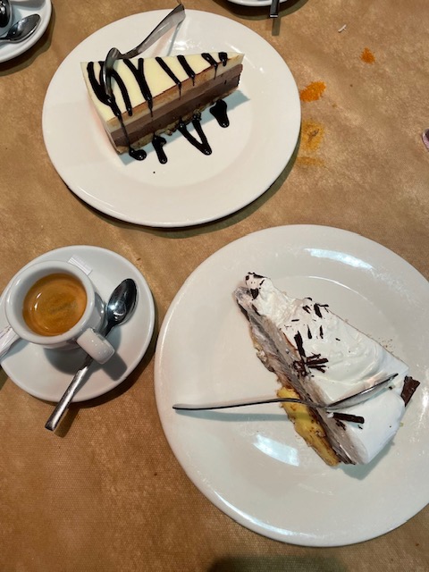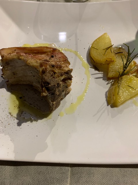 Al Solita Posto was the name of the cute little place we had dinner. We chose a table outside and were the only diners. We passed several bustling patios on the walk there, so felt lucky to have the whole patio to ourselves. We wanted to try several dishes on the menu and opted to split them all as a favor to both our bank account and bellies. The chef was nice enough to plate our portions separately and the presentation was lovely. We ordered lamelle de anatra e carciofi friti (duck with fried artichokes), ravioli della nostra (a traditional ravioli in beef ragu), and pork belly with potatoes and rosemary. We did, however, each opt for a desert because, well, we like desert. I cannot remember the name of the deserts but were both really good. I’m just going to call them a pistachio ice cream yum and the other a chocolate something good.