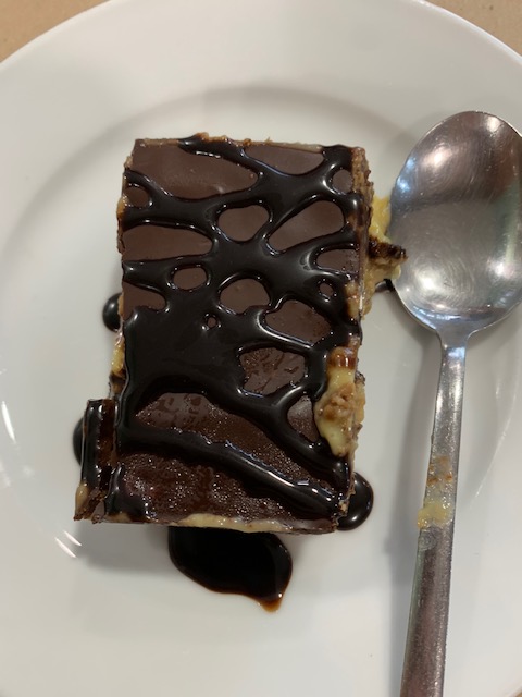The postre (desert) was the star of the show. The tarta de la abuela (grandma’s cake. I HAVE to meet this grandma) which was made of layers of custard, chocolate, cookies, magic, and love. It was amazing. The tarta de Santiago (a Galician almond cake) was delicious as well but next to the sweet, rich, deliciousness of grandma’s cake, was not allowed to shine as brightly as it would have on it’s own. We each had a cafe solo (espresso) with desert.